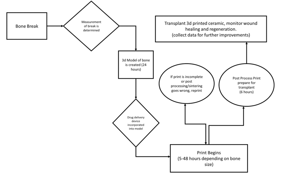 Figure 2 – Process analysis flowchart. Overview of device development from bone break to transplantation for the patient