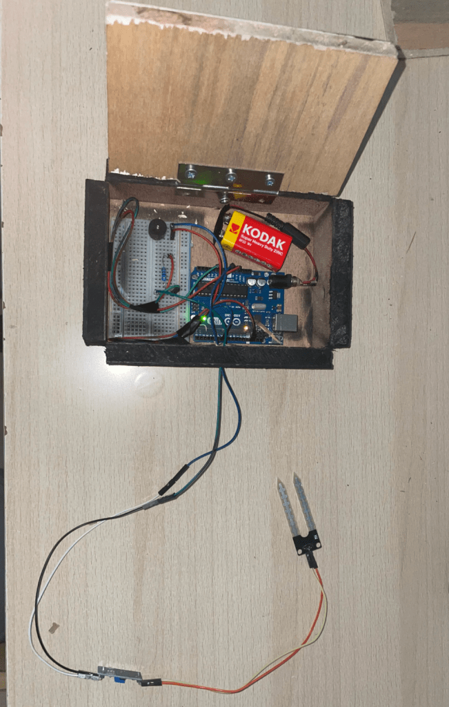 This project presents a simple circuit that notifies its user when soil moisture level reaches below a certain threshold, indicating the need to water the plant.